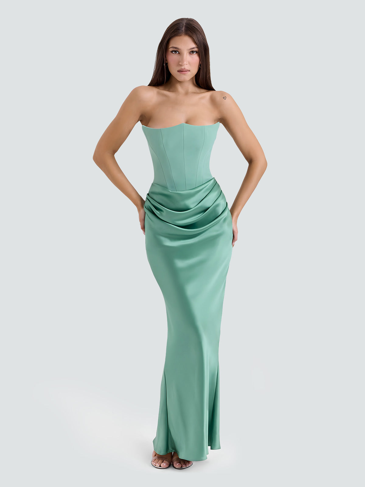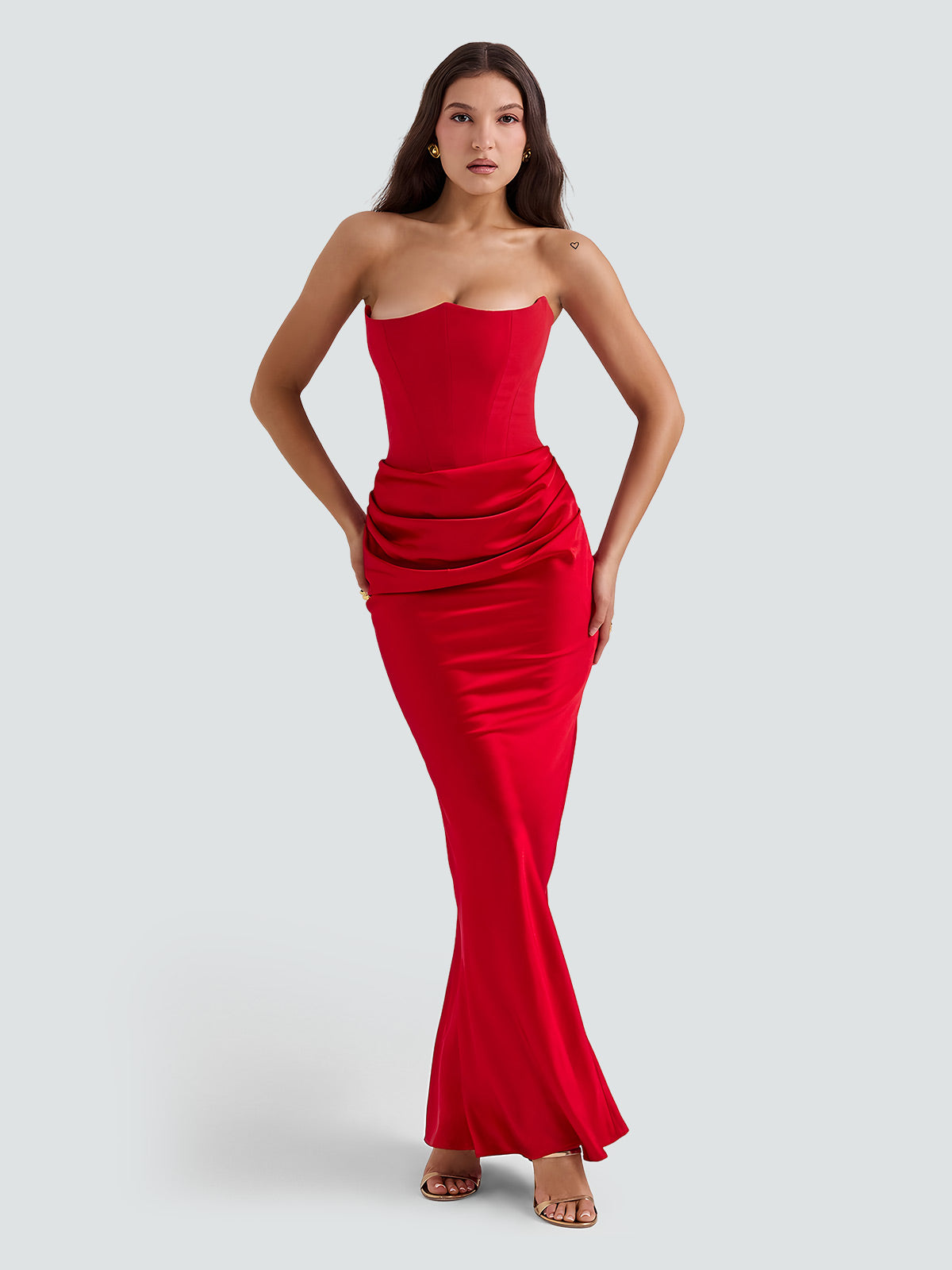 This elegant satin patchwork evening dress combines sophistication with a modern edge. Designed strapless with a flattering corset silhouette, it enhances your figure while offering comfort for summer events. The maxi length and refined details make it perfect for gala occasions, prom nights, or upscale parties, ensuring you stand out with timeless style and grace.