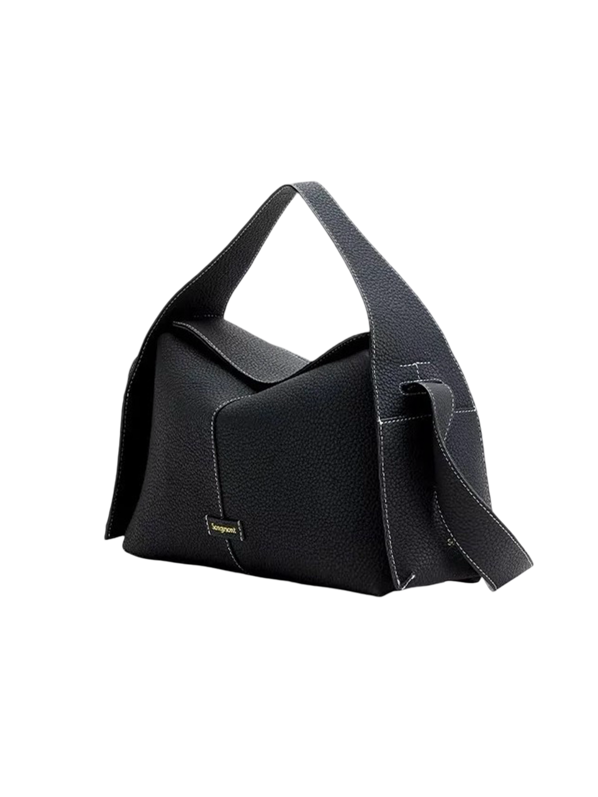 Songmont's geometric tote bag features soft grain leather with striking architectural lines and a magnetic closure. Available in gray and beige, this minimalist design works for any occasion.