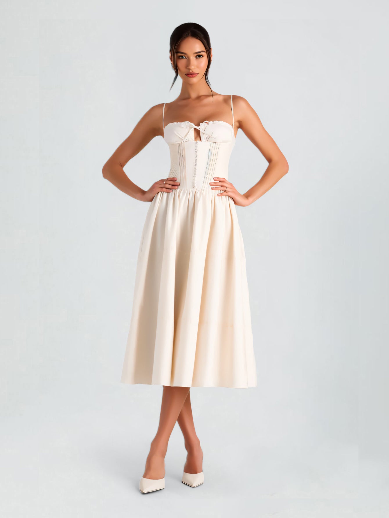 Discover the perfect blend of elegance and style with VESSITA'S Elegant Solid Hollow Out Lace Up Sling Dress. Crafted for the fashion-forward woman, this sleeveless backless midi A-line dress is perfect for summer parties and special occasions. With intricate lace detailing and a chic lace-up design, this dress will make you the center of attention.
