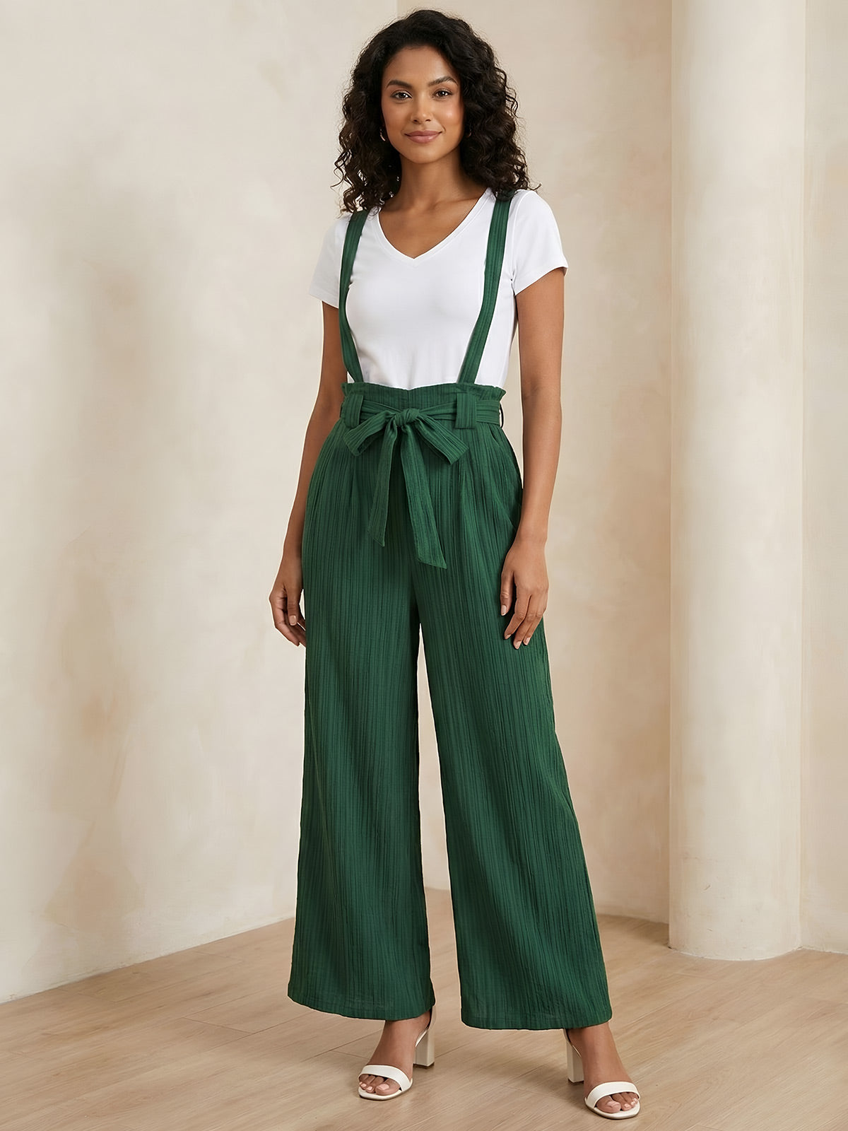 Elen–Flow Strap Pants feature a solid design with adjustable tie waist for a customizable fit. Made from 100% polyester, these long pants offer comfort and easy care with machine wash cold and tumble dry low. Available in sizes S–XL with proportional measurements for each size.