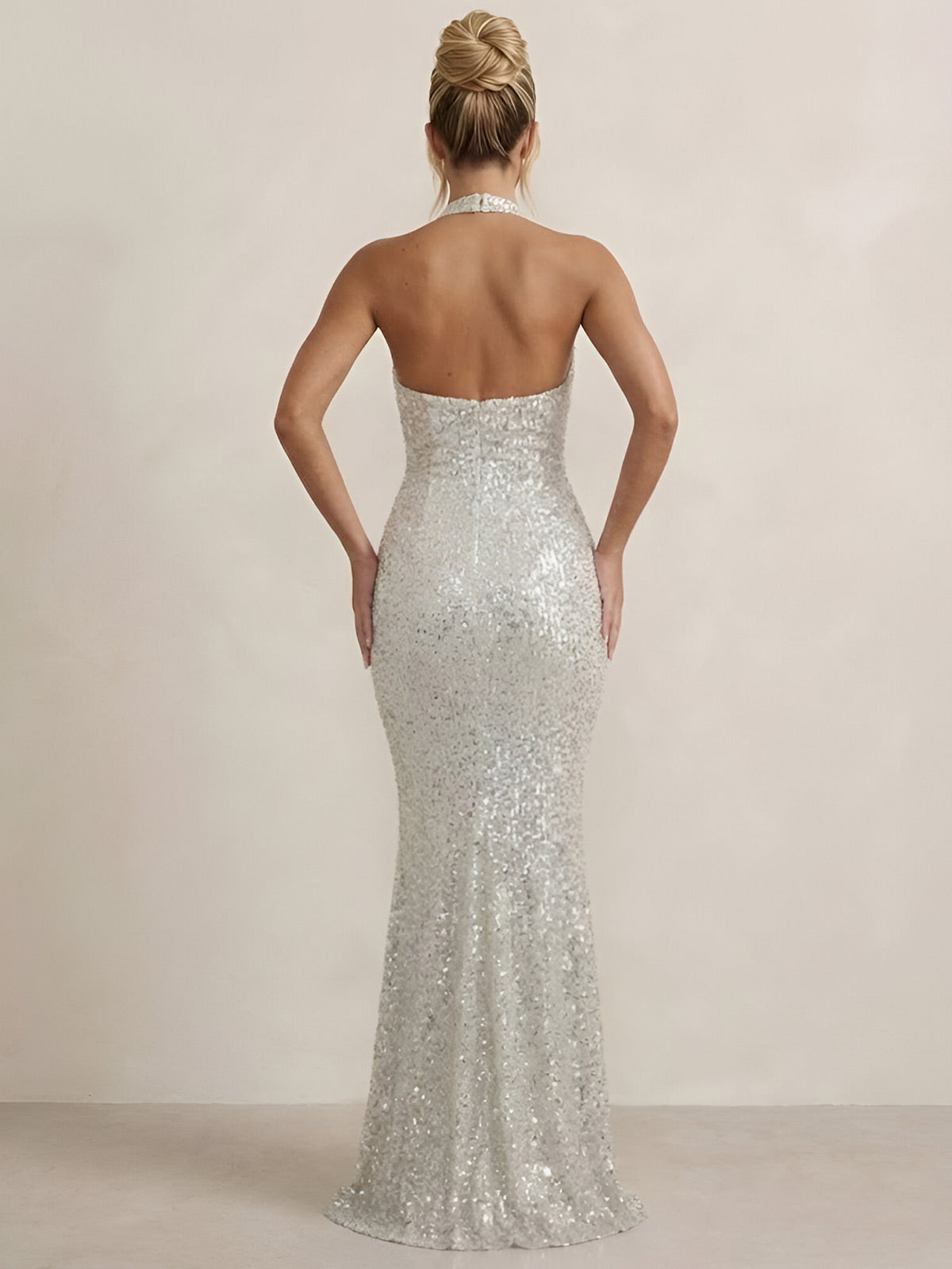 • Neckline: Halter neckline highlighting the shoulders and neckline