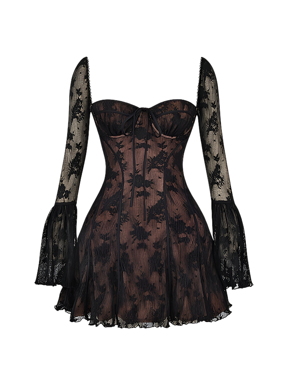 This elegant mini dress features a backless design and long flare sleeves, combining sophistication with a touch of allure. The square collar and A-line pleated silhouette create a flattering fit, while the stylish print adds a fashionable edge. Perfect for club nights or parties, this dress offers a sexy yet refined look that stands out effortlessly.