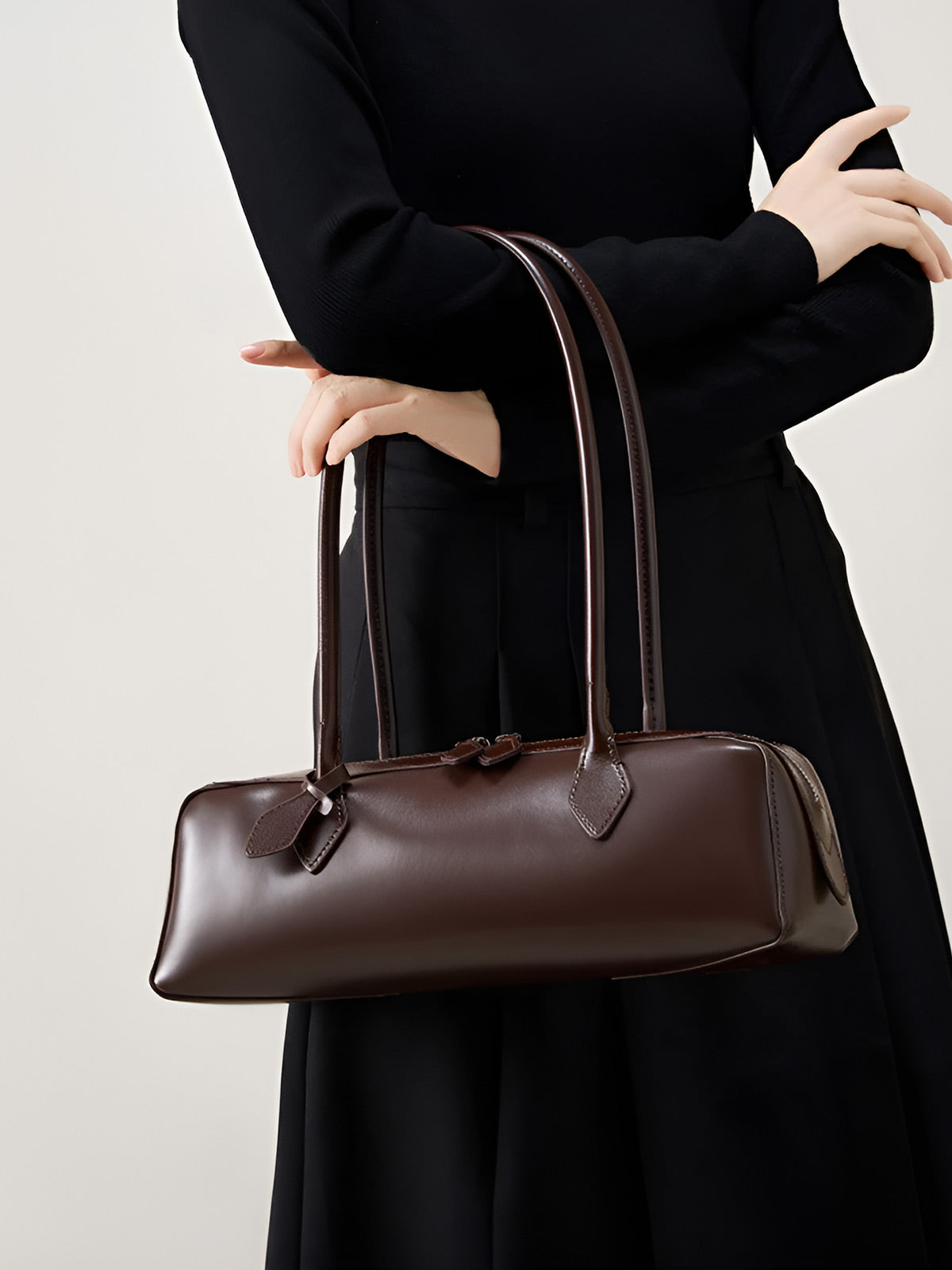 Crafted from genuine cowhide leather, this women's shoulder bag combines luxury with durability. Its sleek baguette design offers a sophisticated look ideal for commuting or shopping. The underarm style ensures comfortable wear while providing ample space for essentials, making it a practical yet elegant accessory for everyday use.
