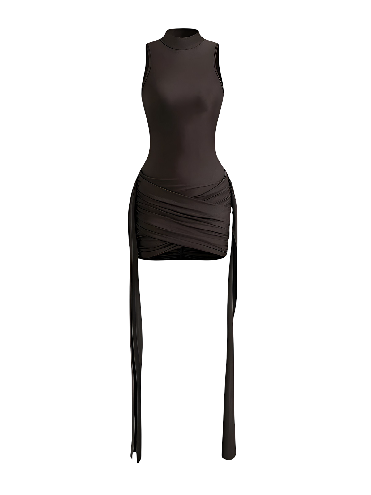This sleeveless mini dress features a stylish turtleneck and an irregular ruched design that enhances its modern silhouette. Crafted for elegance and comfort, it is perfect for clubbing or upscale parties, offering a flattering fit that highlights your figure with a sophisticated edge. Ideal for women seeking a chic and sexy look with a contemporary twist.
