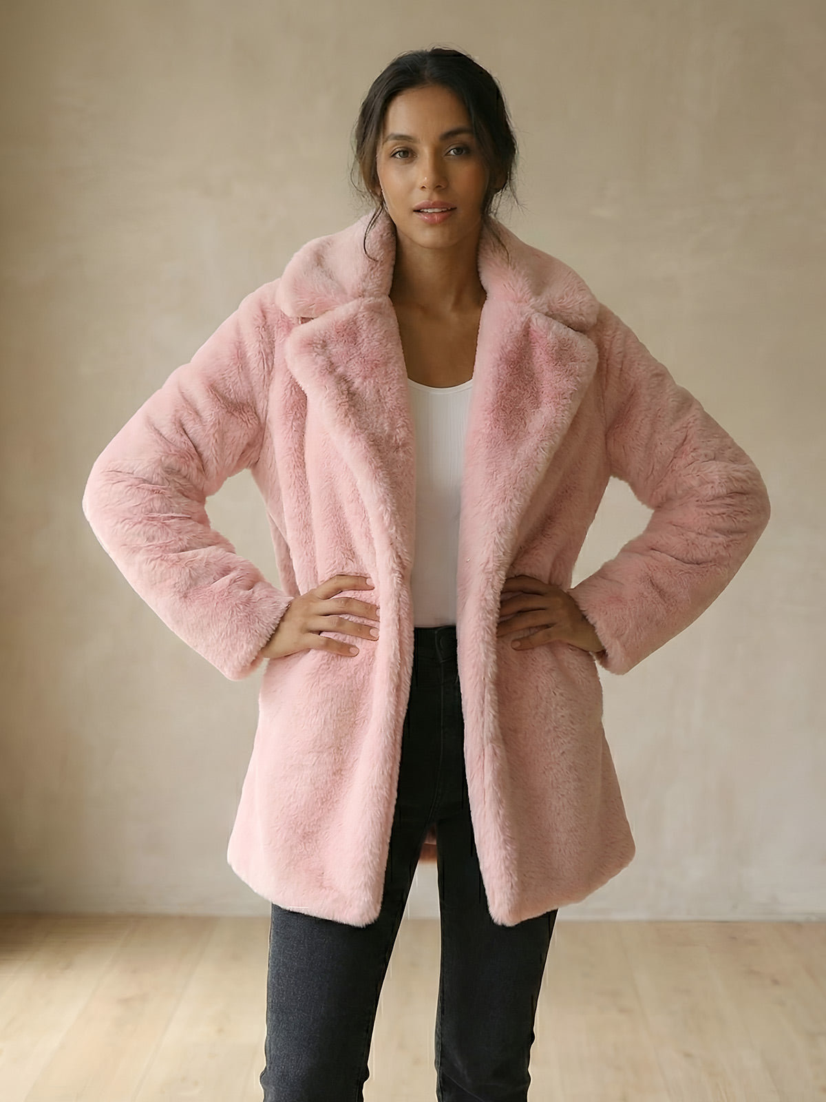 Stay cozy and stylish this winter with our Winter Women's Faux Rabbit Fur Coat. Crafted with high-quality faux fur, this coat offers luxurious warmth and a loose lapel design. Perfect for any occasion, from shopping to weddings. Available in plus sizes for all women.