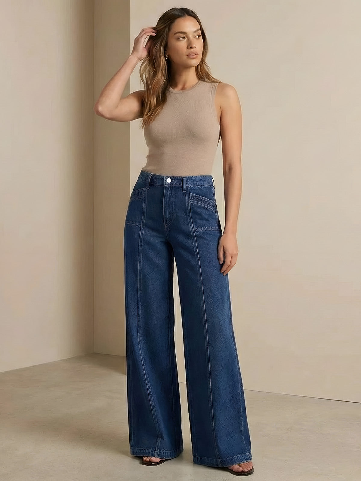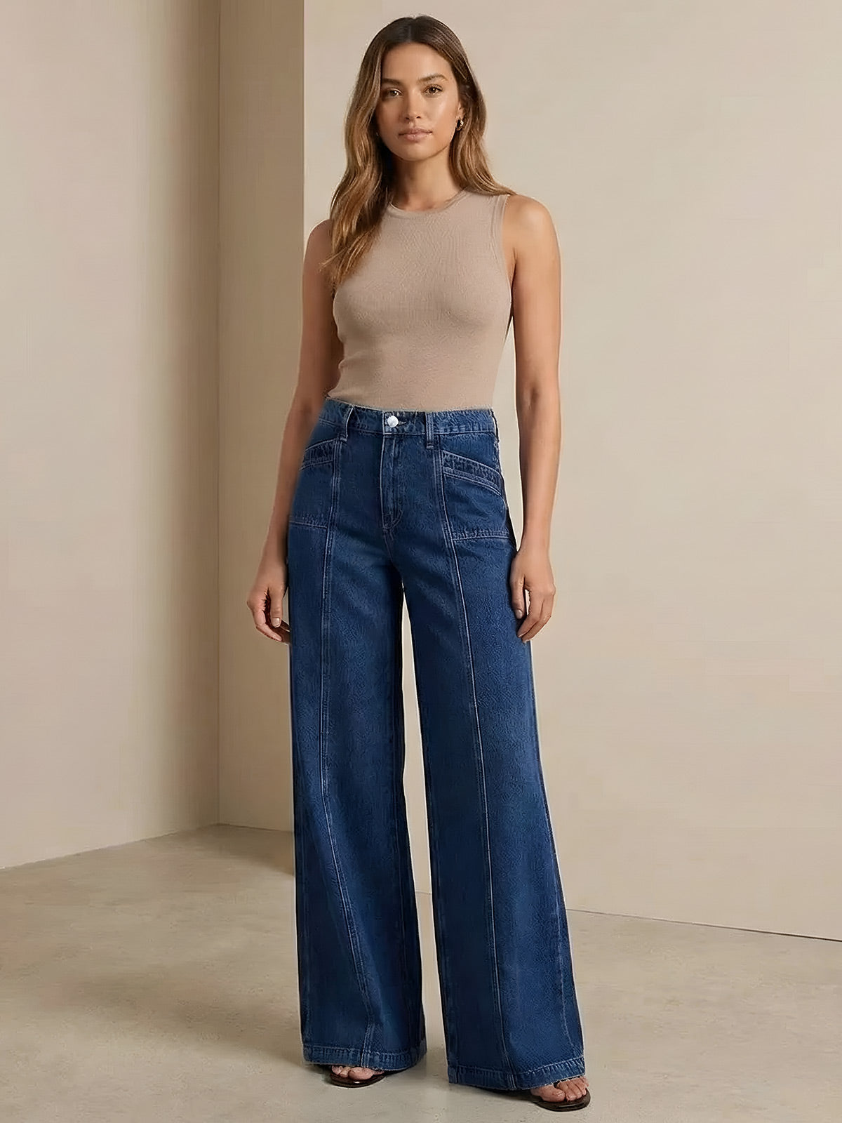 Deep blue wide-leg jeans designed for comfort and style. The relaxed fit flatters all body types, while the versatile wash pairs with casual and formal outfits alike. Durable denim that works as an everyday essential.