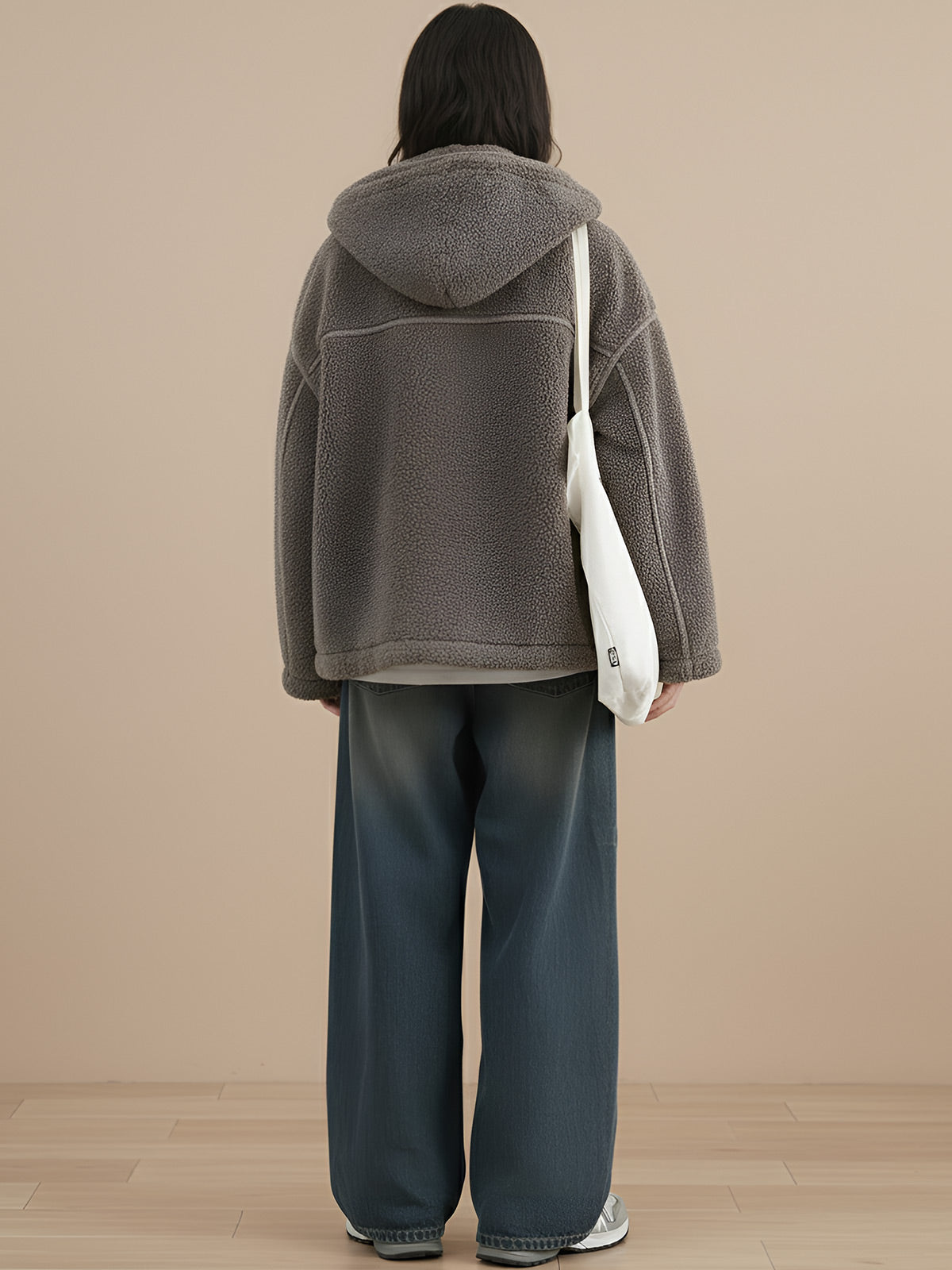 Sophisticated women's jacket with stand-up collar and integrated hood for autumn and winter wear. The plush fabric delivers warmth whilst the relaxed fit accommodates layering. Durable construction maintains softness through regular use, making it an essential piece for refined cold-weather styling.