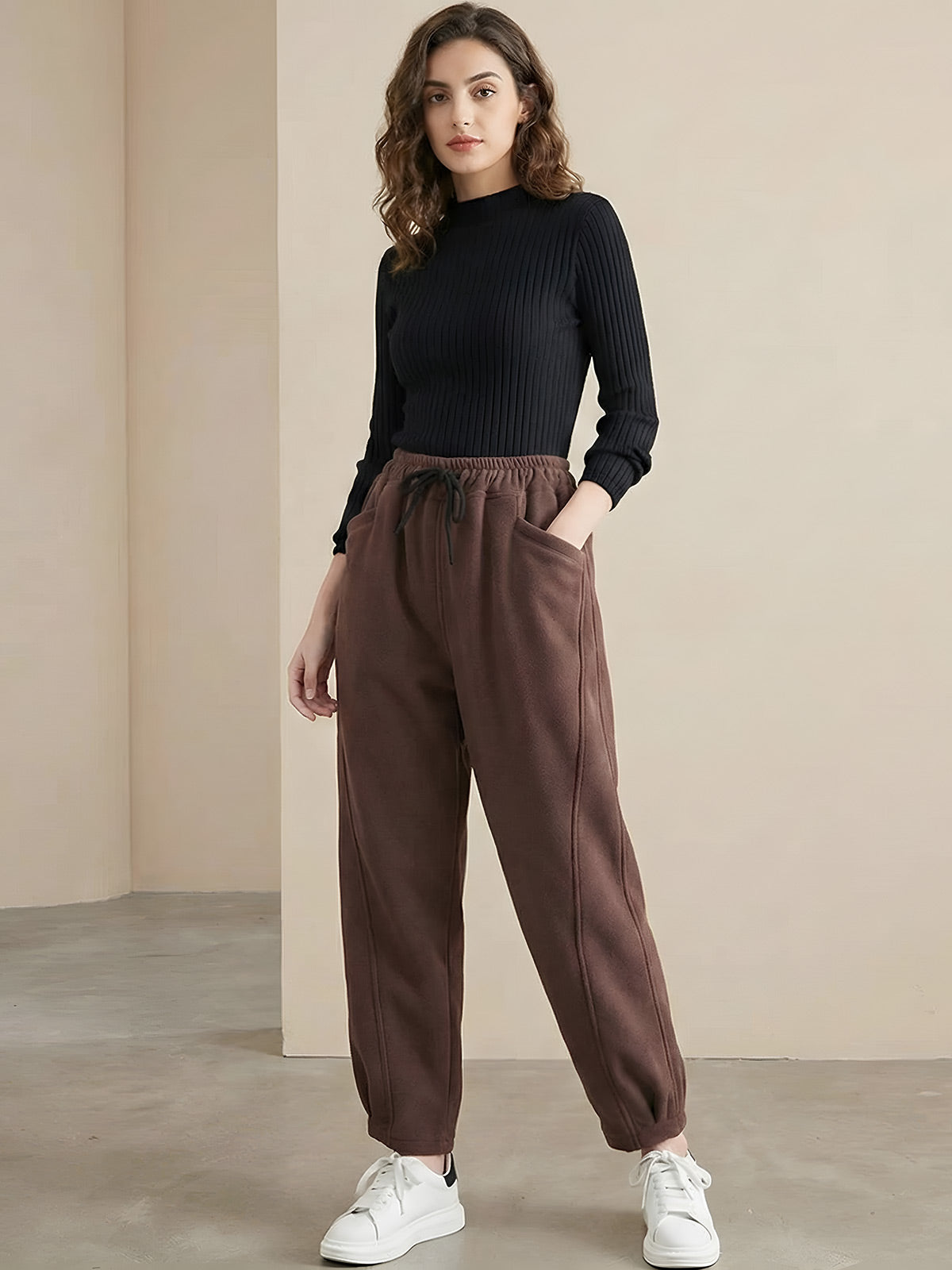 Warm, comfortable high-waist sports trousers for autumn and winter. Featuring a loose fit, lined interior, and thickened fabric for insulation. The relaxed Harajuku-inspired style works for casual wear or athletic activities. Perfect for layering or wearing alone.