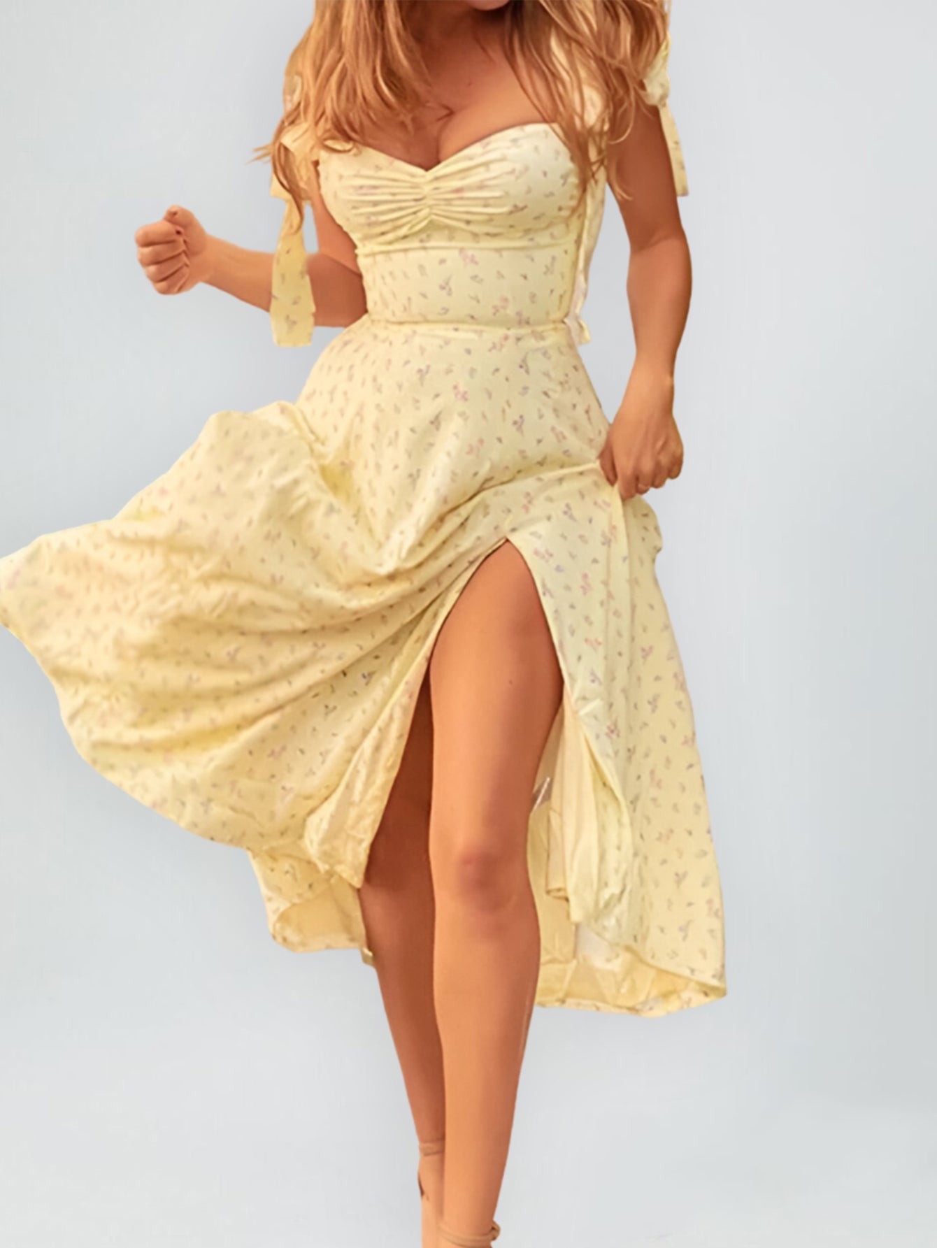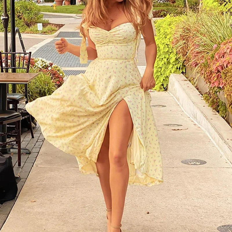 Lady Dress High Cut Skinny Summer Floral Print Sling Midi Dress Sundress